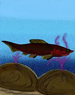 - ^ LELIÈVRE, Hervé (1995). "Description of Maideria falipoui ng, n. sp., long-snouted brachythoracid (Vertebrata, Placodermi, Arthrodira) from the Givetian of Maider (South Morocco), with a phylogenetic analysis of primitive brachythoracids". Bulletin of the National Museum of Natural History, Paris. 4 (17): 163–207. Archived from the original on 2006-11-19. Retrieved 2012-07-28.