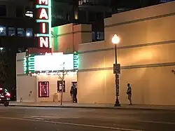 The Main Art Theater was first opened in 1941 by Robert Anthony as the Main Theater, which was a single-screen, 800-seat theater that specialized in mainstream films. In 1983, renovations and changes were done, which included the original single-screen theater being split in two to make two separate theaters. This was when the Main Art began to show art films and independent films. A third theater was added to the building in 1993. In 1997, Landmark Theatres took over the Main Art and operated it until its closure.[9] In 1999, the Main Art was one of only 15 theaters in North America showing The Blair Witch Project, and every show on the schedule was sold out with people coming from as far away as Indiana and upstate New York to see the movie.[10] As part of Landmark's Midnight Madness series, the Main Art also specialized in midnight showings of classic films from the early 20th century to present day such as North by Northwest, The Goonies, and cult films like Tommy Wiseau's The Room.[11][12]