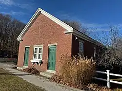 There are two brick schools at 117 and 121 West Main, just beyond the Sligo Road intersection. The first, the District Number 4 school, was built around 1841 and repaired in the 1890s. In 1847, teacher William Osgood had 74 students; as such, a second school was built beside the original soon after.[4] The second building was likely built around 1856. Both schools closed in 1992, when Harrison Middle School opened.[3]