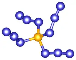 Si(N3)4 can be prepared from SiCl4 and NaN3.[20] This method, however, also produces various silicon chloroazides which can be avoided by prolonging reaction times. Additionally, unlike the boron and aluminum azides, Si(N3)4 cannot be obtained via the reaction between SiH4 and HN3. The hexaazidosicalte salt [(Ph3P)2N]2[Si(N3)6] adopts an octahedral molecular geometry, a very rare case of silicon in an N6 environment.[21]
