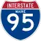 Maine uses standard-size Interstate shields on its Interstate Highways. Many of Maine's Interstate shields contain the state name, and others do not. I-95 shields on the Maine Turnpike are generally accompanied by Maine Turnpike shields. The Falmouth Spur, designated I-495 in 2004, is unsigned.