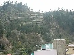 The village is located on a plateau wedged between the Chowki mountains on the northeast side and the Sarjool top on its southwest. A small stream runs through the base of these hills toward the nearby hamlet of Samian. The average height of the village is 4,304 feet (1311 metres) above sea level.[1] The subsoil is mainly mixed rocky clay. It is 17 kilometres from the nearby city of Mansehra and 29 kilometres from Balakot.