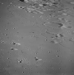 In the mare, due west of Mairan, is a small lunar dome designated Mairan T with 3.8 km wide depression at the summit (in official IAU nomenclature "Mairan T" name refers only to the depression), believed to be a caldera[3] The width of hill is about 7 km, and height is about 800 m.[4] It is one of four unusually steep (with slopes reaching 22-27 degrees) and bright domes in area which are thought to be formed by very viscous, high-Si lava.[5]