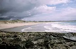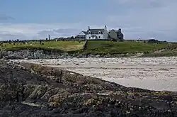 After graduating she married Ronnie Hedderwick on 24 June 1962,[1] and worked for two years as a travelling art teacher in Mid Argyll, qualifying at Jordanhill College of Education.[1][6] The couple then spent eighteen months working respectively as a dairymaid and a cattleman on a large farm estate at Applecross in Wester Ross;[7] but in 1965,[8] three months after the birth of her first child, Mark Hedderwick,[9] they moved to Coll, where they bought Crossapol, an isolated 19th-century farmhouse at the southern end of the island, with a big Rayburn stove and oil and gas lamps and a well, but neither electricity nor running water nor permanent road access, three miles from the next nearest house, at the end of a mile and a half of white sand beach.[2][10] There the couple lived for ten years, raising their two children.