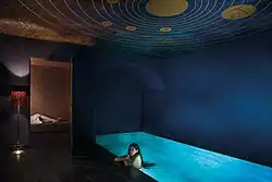 Reserved exclusively for guests who request the key, the secret spa is decorated with a celestial ceiling whose gold stars shimmer across a cobalt blue sky.[13] The stars sparkle above a 9 metre long swimming pool which is adjacent to a steam bath and a body treatment room.[14]