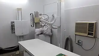Ankle radiographs are used to detect widening of the tibiofibular syndesmosis or medial clear space. The medial clear space is the area between the talus of the ankle and the medial malleolus. Damage to the deltoid ligament and syndesmotic ligaments result in mortise instability, causing the talus to laterally shift and widen the medial clear space.[4][12] A clinical study, conducted in 2006 and published in the Journal of Bone and Joint Surgery, found that the medial clear space size of a normal ankle and an injured ankle measured at 4 millimetres and 5.4 millimetres in length respectively.[11] To confirm diagnosis, full-leg radiographs are used to inspect for fractures of the proximal fibula and widening of the interosseous clear space (or tibiofibular clear space). The interosseous clear space is the area between the medial side of the fibula and lateral side of the tibia. A peer-reviewed study, published in Injury in 2004, found that an interosseous clear space greater than 10 millimetres indicates diastasis of the syndesmotic ligaments.[4]