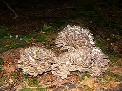 Grifola frondosa, also known as hen-of-the-woods, sheep's head,[2] ram's head, or maitake (舞茸, "dancing mushroom") in Japanese, is a polypore mushroom that grows at the base of trees, particularly old growth oaks or maples. It is native to China, Europe, and North America.