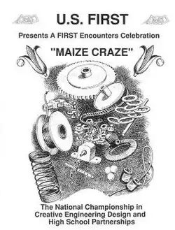 Maize Craze was the game in the inaugural year, 1992, of the FIRST Robotics Competition. Gameplay consists of four individual robots, or “machines”, trying to collect tennis balls, or “treasure”, into their own home base. The field also includes an impediment to the robots consisting of a layer of loose corn kernels covering the entire playing field, 1-2 inches deep.