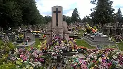 ![]() Mass grave at cemetery in Majdan Stary, where victims of the massacre were buried | |