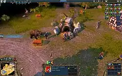 The core gameplay of Majesty 2 is essentially the same as the original Majesty. Players take the role of "the sovereign", placing buildings and recruiting units as in other real-time strategy titles. Individual units ("heroes"), however, are semi-autonomous; each has their own statistics and inventory and interact with the game world according to unit-specific AIs (for example hunters will scout unknown areas of the map while warriors prefer to attack or defend locations).[8] The player can influence the actions of hero units by placing bounties on particular actions, such as exploring an area or defeating a specific enemy unit, using a variety of "flags".[9] They also supply heroes with equipment and other items via trade buildings, which both improves the hero's abilities and allows the player to recoup the money heroes have gained from flags and defeated enemies.[10]