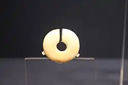 Majiabang people used jade when making ornaments. At Weisun Site, a few jade objects were found in the Majiabang Culture deposits, including hue-earrings, huang-pendants, small tube, and other ornaments.[16] For example, a penannular jade ring and semi-annular jade discs, all made from local materials.[17]
