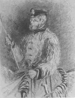 At the outbreak of the First Anglo-Afghan War, despite having no experience in northern India, he was rewarded for his services in Madras with re-deployment to the frontier provinces. He was initially placed in command of the escort which accompanied the families of Shah Sujah and Zaman Shah from Delhi to Kabul.[1] The journey involved traversing the Punjab which had descended into a state of near anarchy following the death of Ranjit Singh and the convoy was frequently at risk from marauding soldiers and bandits.[2] On reaching Kabul, part of the escort was formed into a company of sappers and miners, which, under the command of Broadfoot, marched with Sir Robert Sale's force from Kabul to Jalalabad in October 1841. Broadfoot was specially mentioned in the dispatches for his gallantry in the actions with the Afghans between Kabul and Gandamak. At Jalalabad Broadfoot became garrison engineer, and by his skill and vigour speedily restored the defences of the town, which had been found in a ruinous condition. Having no men from the Sappers and Miners available, he used Gurkha troops as an ad hoc engineer workforce. During the siege of Jalalabad by the Afghans, Broadfoot (now a captain), aided by his friend Henry Havelock, then a Captain of foot, was instrumental in preventing a capitulation, which at one time had been resolved on by Sir Robert Sale and a majority of the principal officers of the force. In one of the sorties made by the beleaguered garrison Broadfoot was severely wounded. He subsequently accompanied General Pollock's army of retribution to Kabul, again distinguishing himself in the actions which were fought at Mammu Khél, Jagdallak, and Tezín. At the close of the war he was created a Companion of the Order of the Bath, and was appointed Commissioner of Moulmein. He arrived in Moulmein in April 1843, and was tasked with reforming the corrupt practices and maladministration of the province.[2]