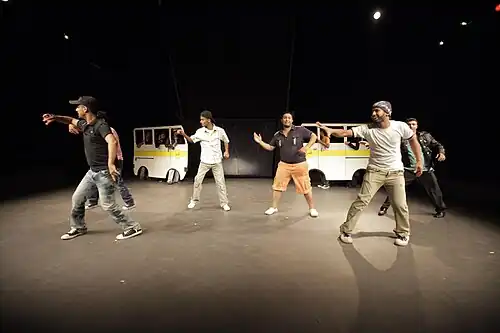 Mak Nazl (Arabic: معك نازل) is a Yemeni Arabic-language adaptation of the German musical Linie 1, originally written by Volker Ludwig for the Berlin-based GRIPS Theater.[1] The adaptation was created by the Khaleej Aden Theater Troupe, directed by Amr Gamal, and premiered in 2009. Mak Nazl is widely regarded as a landmark in Yemeni theater, praised for its cultural adaptation, exploration of social issues, and its groundbreaking international success, becoming the first Yemeni play to be performed in Europe.