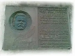 ![]() The Gorky plaque on the wall of the house in Tbilisi where the story was written | |