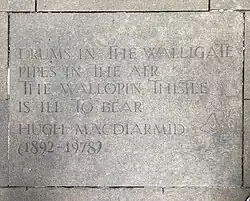 Makars' Court is a courtyard in central Edinburgh, Scotland. It forms part of Lady Stair's Close, which connects the Lawnmarket with The Mound to the north, and is next to the Writers' Museum. Described as an "evolving national literary monument",[1] the courtyard incorporates quotations from Scottish literature inscribed onto paving slabs. The quotations represent works in the languages used by Scots past and present: Gaelic, Scots, English, and Latin.