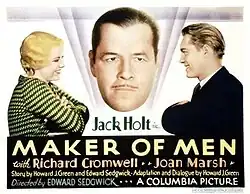 Maker of Men is a 1931 American pre-Code sports melodrama film directed by Edward Sedgwick and written by Howard J. Green and Edward Sedgwick. Produced by Columbia Pictures Corporation, the film stars Jack Holt, Richard Cromwell, and Joan Marsh. It also features John Wayne in a supporting role.