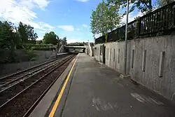 Makrellbekken is a rapid transit station situated on the Røa Line, 5.4 kilometers (3.4 mi) from Stortinget in the city center.[11] Makrellbekken is open ground station featuring two side platforms. It is partially situated under an overpass which carries Sørkedalsveien. The station meets the metro standard of the Oslo Metro. This includes two 120-meter (390 ft) side platforms and an overpass. The station is constructed in massive concrete. The station is situated adjacent to the sports arena Njårdhallen[3] and the Embassy of the United States.