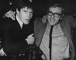 Evans appeared in four (out of five) Beatles' films.[4] During the filming of the Beatles' first feature film, A Hard Day's Night, Evans appeared in a cameo role, carrying an upright bass in between John Lennon and Millie in the backstage scene in which Millie (played by Anna Quayle) mistakes Lennon for someone else.[45] In Help!, Evans played a confused channel swimmer who pops up through an ice-hole in Austria, and on a beach in the Bahamas.[46] Evans and Aspinall were asked to find and hire the actors that were needed to perform in the Magical Mystery Tour film, and to hire an old 60-seater coach, on which they were told to paint the Magical Mystery Tour logo, which McCartney had designed.[32] Evans later appeared in the film as one of the magicians, who cast mysterious spells on the passengers of the bus.[47]