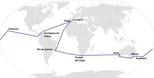 The Malaspina circumnavigation expedition was an interdisciplinary research project to assess the impact of global change on the oceans and explore their biodiversity. The 250 scientists on board the Hespérides and RV Sarmiento de Gamboa embarked on an eight-month expedition (starting in December 2010) scientific research with training for young researchers - advancing marine science and fostering the public understanding of science.