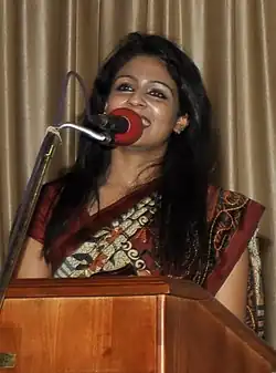 She acted in Nandini, a South Indian multilingual serial as Janaki (spirit) airing in Sun TV, Surya TV, Gemini TV and Udaya TV.[9] She also acted in Ammuvinte Amma as Anupama along with Vinaya Prasad.[10] She acted in the longest-running soap opera in Malayalam, Manjil Virinja Poovu, and took a break after appearing in up to episode 1133.[11] After a brief hiatus, she is currently working on a new TV series, Meenu's Kitchen.[12]