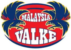 The Malaysia Valke was a professional rugby union team based in Kuala Lumpur that played in the Global Rapid Rugby competition.[1][2] The team was formed in 2019 as a joint venture between Malaysia Rugby and the Falcons Rugby Union of South Africa,[3][4] but was disbanded a year later after the incomplete 2020 season was cancelled due to the COVID-19 pandemic.[5]