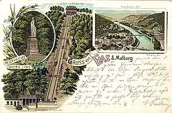 The Malbergbahn - also known as Malbergbahn Bad Ems - was a funicular, that operated between Bad Ems and the hotel at the Malberg Hohen from 5 June 1887 to 1979. On 7 December 1981, two years after the decommissioning, was the funicular made into a technological monument. It had no accidents during its operational period.