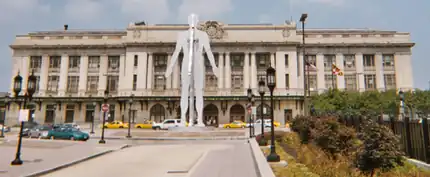 Male/Female is a 15.5-meter (51 ft) tall hollow stainless steel sculpture by Jonathan Borofsky standing at the entrance to Penn Station in Baltimore, Maryland. It depicts intersecting colossal male and female forms with pulsing light-emitting diode light.[2]