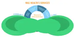 However, user fees—in which patients pay money for services at a clinic or hospital—remain one of the largest barriers to health care for the poor in developing countries.[12] Through its program Action for Health, Mali Health seeks to help families who are unable to afford health care for their children. Focusing on the first 1,000 days of life, when development is the most critical and the most vulnerable, Action for Health children receive subsidized primary care. Mali Health’s Community Health Workers visit enrolled families to monitor children's health and provide health education on issues such as malaria and malnutrition.[13]