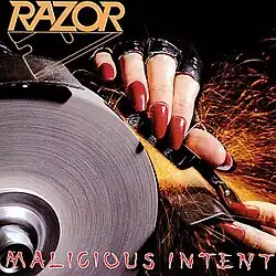 Malicious Intent is the third album released in 1986 by Canadian speed/thrash metal band Razor. The album contains more honed and intense screaming from frontman Stace McLaren and the tracks on it mostly contains lyrics about heroic fantasy and playing heavy metal. An exception to this might be "Tear Me to Pieces", with lyrics penned by McLaren about knife fighting. Malicious Intent is known for containing incredibly loud drum rides and overall poor production. The album itself is an overall turning point for Razor and shows them going from traditional heavy metal and speeding up to a more thrash metal-oriented sound.