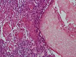 - ^ Karaaslan, Onder; Can, Murat Melih; Silistreli, Ayse Ozlem Karatas; Bedir, Yagmur Kaan; Caliskan, Gorkem (2012). "Malignant Pilomatrixoma Arising on the Previously Irradiated Face: Case Report and Literature Review". Journal of Cutaneous Medicine and Surgery. 16 (5). SAGE Publications: 341–343. doi:10.1177/120347541201600511. ISSN 1203-4754. PMID 22971309. S2CID 39266289.