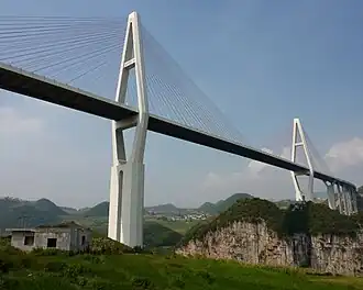 Malinghe River Bridge is a 241 metre high cable-stayed bridge near Xingyi, in the Guizhou province of China.[1] As of 2019, it is among the 50 highest bridges in the world. The bridge is located on G78 Shantou–Kunming Expressway and crosses the Maling River Canyon. The Maling River is a tributary of the Nanpan River.