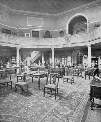 The company was founded in 1865[1] by John Mallett (a jeweller and silversmith) at 36 Milsom Street, Bath, Somerset, England. His son, Walter Ellis Mallett, who had joined his father's business in 1874, quickly assumed complete control, and today he is acknowledged by Mallett as the real founder of the firm. It was he who expanded the stock to include old silver and furniture and who arranged for the purchase of the lease of the Octagon Chapel. This building had originally, in 1767, been designed as a church by the architect Thomas Lightholder,[2] whose brief was to produce a structure which would be warm, comfortable and well lit.[3] The Octagon fulfilled all of these requirements, and it became the most fashionable church in Bath.[3] Eminent and distinguished visitors made a point of engaging a pew for as long as they stayed in the city, hiring it at the same time as they hired their lodgings. The most expensive of these were like small rooms, each with its own fireplace and easy chairs. Between service and sermon, an interval was allowed during which footmen poked the fires and saw that their master and mistress were comfortable. The vaults of this building were let out to a wine merchant, which gave rise to the verses by Christopher Anstey: