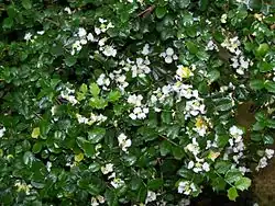 Malpighia coccigera is a species of flowering plant in the family Malpighiaceae, that is native to the Caribbean. It is commonly known as Singapore holly[1] or dwarf holly due to the shape of its leaves, despite it not being a true holly (genus Ilex).