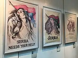 She also created the well known poster Serbia needs your help, based on the Miloje P. Igrutinović's photo of dead Serbian soldiers who had died of hunger and exhaustion on the Greek island of Vido. She made the soldier "live" on the poster and later, as a sort of an artistic installation, posted the soldier's head on the bronze statue of the Saint Francis of Assisi in front of the Mayo Clinic in Rochester, Minnesota.[24][25] She published her impressions about her visit in the chapter "Hunger in the Balkans" of her book Heads and Tales.[26]