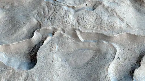 Layered deposit in the Mamers Valles, as seen by HiRISE.