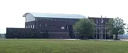 An airport for Manassas was proposed in 1930, when the mayor was Harry P. Davis.[4] It was built in 1931 on 94 acres (0.38 km2)[5] along Virginia Route 234, in the area now known as Manaport Shopping Center. Originally owned privately, the Town of Manassas bought the airport in 1945.[6] Due to airport activity and nearby housing development, the airport moved to its current location in 1964. The new airport opened with a single 3,700-by-100-foot (1,128 m × 30 m) paved runway. In 1992, the city purchased a control tower from Centennial Airport near Denver and reassembled it at Manassas Regional Airport. A new terminal was built in 1996.[7] The IATA code was changed from WOU to the current MNZ between mid-1976 and mid-1977.