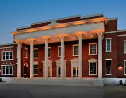 In 1930, Bradenton High School relocated to the site where Biltmore Grade School formerly operated. The Biltmore Grade School was originally built in 1926[10] but closed one year later because of the collapse of the Florida Land Boom.[9] The school's second location would end up becoming the Bradenton Junior High School in 1938 serving students in 7th to 9th grade before being made into the county school district administration offices in 1956 which served in that role until being demolished in 1989 when a new administration building was built.[11] The building that formerly housed the Biltmore Grade School became known as the Davis Building after a longtime principal of the school, Paul F. Davis.[10] Both Bradenton High School and Palmetto High School merged with each other in 1947 and the school would be renamed once again to Manatee County High School but ended up splitting again in 1959 with the school getting the name Manatee High School.[10] Walker Junior High School which existed across the street from Manatee High School would be absorbed by Manatee High in 1969 as a part of the school district doing redistricting for desegregation.[12] In 1997 a major redesign for the Davis Building that included new classrooms, a science-technology building, gym, and administration building was constructed.[13] Most of Walker Junior High School was demolished in 1998 with only the western portion remaining.[12] The Davis Building was demolished in 2011 and replaced.[10]