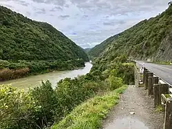 From 1872 until 2017, State Highway 3 went through the Manawatu Gorge on the south side of the river. In June 2025, it was replaced by Te Ahu a Turanga, a new highway across the hills to the north of the gorge.[7]