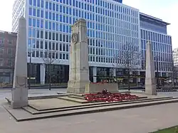 ![]() Manchester Cenotaph in 2017, in its new location near the town hall; looking south | |