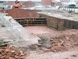 ![]() Manchester Dock entrance lock, unearthed during 2007 for the excavation for the Liverpool Canal Link. | |