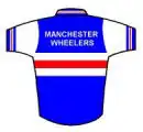 Club racing jerseys are royal blue, red and white, with the words 'Manchester Wheelers'.