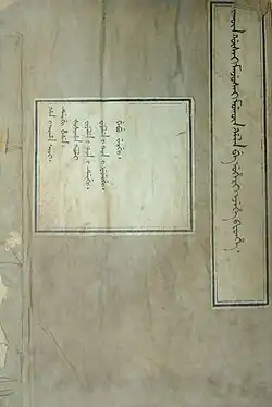 The Jiu Manzhou Dang, archives of early 17th century documents, contains the earliest use of Manchu.[19] According to the Qing dynasty's official historical record, the Researches on Manchu Origins, the ethnic name came from Mañjuśrī.[20] The Qianlong Emperor supported that point of view and wrote poems on the subject.[21]: 6