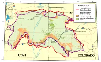 - ^ Johnson, S.Y.; Johnson, R.C. (1991). "Stratigraphic and time-stratigraphic cross sections of Phanerozoic rocks along line A-A', Uinta and Piceance basin area-Eagle basin, Colorado, to eastern Basin-and-Range area, Utah". U.S. Geological Survey Miscellaneous Investigations Series Map. I-2184-A. Retrieved 15 September 2021.