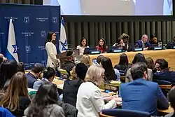 Since the beginning of the Gaza war in October 2023, Dayani has made media appearances to speak on antisemitism.[25] She has regularly appeared on MSNBC to comment on the impact of antisemitism on Jews in the diaspora.[26][27][28] Dayani's video about the October 7 Hamas-led attack on Israel was viewed approximately 50 million times.[29] She was named as one of the "Top 100 Influential Jews" for the Hebrew year of 5782 (from 2021 to 2022) by the Tel Aviv Institute.[30] She spoke on the attack as part of Permanent Mission of Israel to the United Nations, later that year.[31] Amidst nationwide pro-Palestinian protests on university campuses in 2024, she spoke at a rally in Cornell University that was organized to combat antisemitism on campus and throughout the U.S.[32]