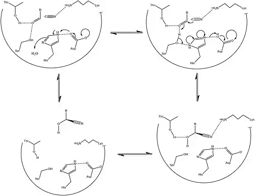 - ^ a b c d e f g h Sharma, Monica; Sharma, Nitya Nand; Bhalla, Tek Chand (August 2005). "Hydroxynitrile lyases: At the interface of biology and chemistry". Enzyme and Microbial Technology. 37 (3): 279–294. doi:10.1016/j.enzmictec.2005.04.013.