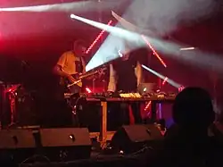 Mandragora began life as a Hawkwind influenced psychedelic rock band formed by Simon Williams in 1983.[1] They played gigs and festivals around the UK including the Stonehenge Free Festival of 1984.[2] Their first album was a self-financed cassette only release called Somethink Missing. In 1983, Simon Williams saw a performance by innovative New Age synthesizer pioneer, Phil Thornton at a festival in Sussex and after the show the two met. So in 1988 when Mandragora were asked to open for Hawkwind on their UK tour, Phil Thornton was invited to play synths with the band. With improvisation a key component of Mandragora's live concerts, Phil, with his Moog synthesizer and samplers, gave them a much more sophisticated sound. As a side project during the 1980s, Thornton assisted Alex Sanders composing the music for Sanders' Mother Matrix incantation.[3]