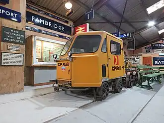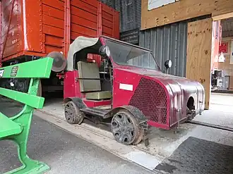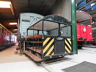 In addition to standard gauge stock, the museum also has a service vehicle from Southend Pier Railway. It was built as a passenger car in 1949 by AC Cars of Thames Ditton when the railway was a 3 ft 6 in (1,067 mm) gauge electric line, but was converted to become a service vehicle subsequently. It carried the number 8 when on the pier.[7]: 87 [17]