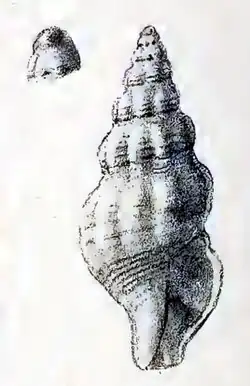 This is a pretty, small, but solid shell, many-ribbed, surrounded with sulcate revolving lines, the surface being sometimes plain and unrelieved, or lined and banded with chestnut-brown.[1]