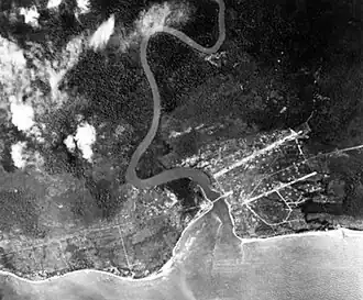 ![]() Aerial reconnaissance photograph of Manggar Airfield, taken in 1944. | |
