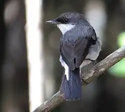 The mangrove robin was described by the French naturalist Charles Lucien Bonaparte in 1850 from a specimen collected in New Guinea. He coined the binomial name Myiolestes pulverulentus.[2] The species was subsequently moved to the genus Peneoenanthe by the Australian ornithologist Gregory Mathews.[3] It is now placed in the genus Peneothello, based on the results of a molecular phylogenetic study of the family Petroicidae, published in 2011.[4][5]